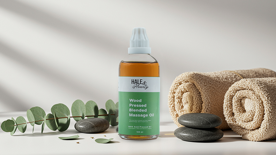 Introducing Hale and Hearty’s PRE-BLENDED MASSAGE OIL, designed to penetrate deep into ligaments and tissues, which not only soothes muscle pain but also enhances joint flexibility.